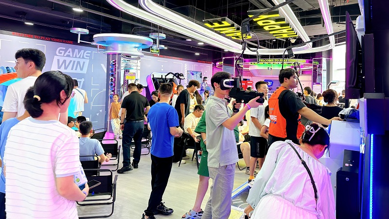 其中,二樓打造的“動感競技場”,可讓消費者體驗保齡球精準碰撞的樂趣,在“槍王對決”和“實彈射擊”中感受腎上腺素飆升,挑戰(zhàn)“滑索”的速度與“射箭”的專注,暢玩Switch2/PS5主機游戲,或在“炫動單車”“金剛戰(zhàn)士”“巔峰狙擊”中釋放活力,更可在“落日休憩區(qū)”憑欄觀海,動靜皆宜;三樓打造了“科技社交匯”,讓消費者步入VR館即可開啟奇幻冒險,通過“宇宙一號”“傘途”“雙人360”“樂享滑雪”等7大尖端設(shè)備穿梭虛實之境。同時,“聲控派對”“開放式舞臺”點燃社交熱情,桌游、麻將、碰碰車、臺球、飛鏢、模擬網(wǎng)球、“悅動格子”“360°單車”等豐富選擇滿足不同興趣群體,更有私密“轟趴房”和舒適“太空艙”提供專屬聚會與休憩空間。